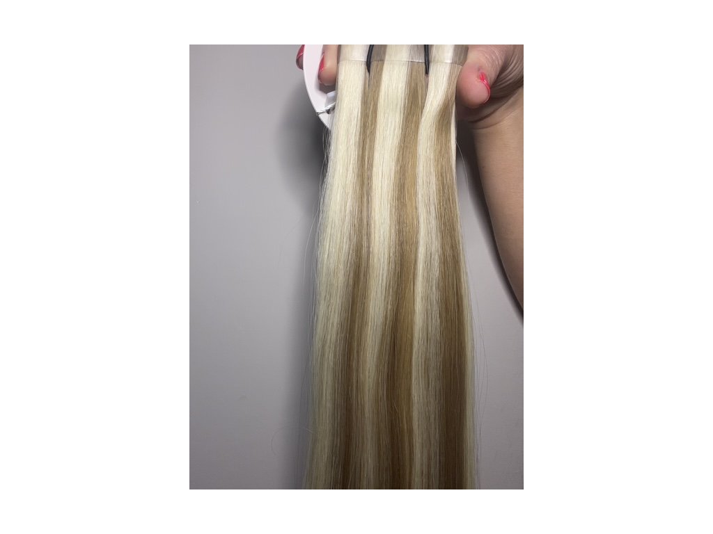 Teljes kutikulával rendelkező prémium minőségű szálirányos emberi hajból készült I. osztályú (ragasztócsíkos) "DIY" TAPE "csináld magad póthaj" hajhosszabbításhoz. A DIY TAPE hajhosszabbításnak az a lényege, hogy könnyen le- és felrakható legyen.