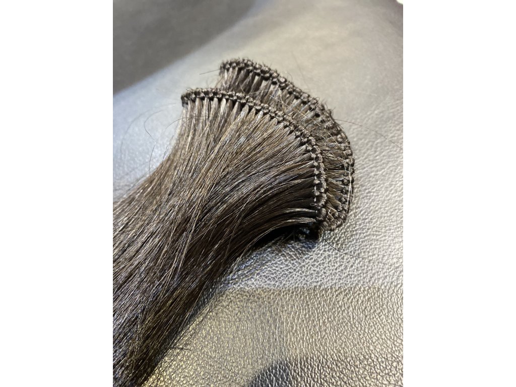 We make hand-tied hair extensions from Class I braids from one head. The amount of hair incorporated into an average (approx. 28cm) row is approx. 20-25 grams for a 50-60cm long hair extension, in the case of hand-tied hair. By sewing the hair extensions rows on top of each other, double or even triple rows can be created, so more hair can be added per row. The width of the rows is made individually as specified during the consultation. Tied hair extensions can be used for various hair extensions, e.g. for braid-with or braid-without-braid sewing techniques, for ring sewing, for creating a braid extension.