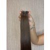 Teljes kutikulával rendelkező prémium minőségű szálirányos emberi hajból készült I. osztályú (ragasztócsíkos) póthaj TAPE hajhosszabbításhoz.